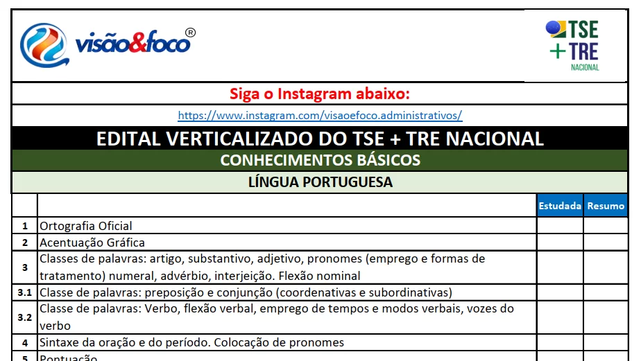 Lembrando que esse edital verticalizado foi criado a partir de um estudo das matérias correlatas entre os concursos de TRE que ocorreram em vários estados do país.
